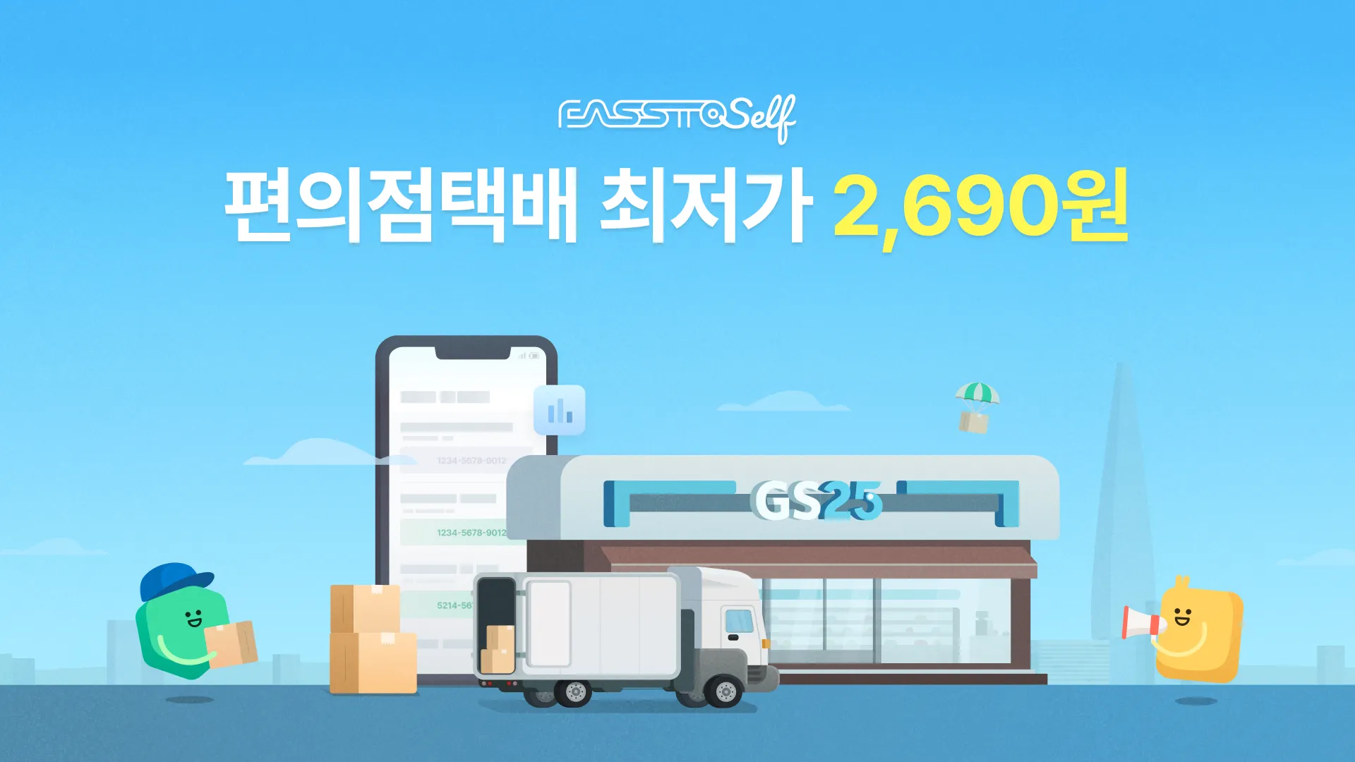 쇼핑몰 주문관리 무료 솔루션 파스토셀프가 지난 16일 정식 론칭한 데 이어 GS편의점택배 500g 이하 2,690원 최저가 요금을 운영한다고 25일 밝혔다. 이번 편의점택배 최저가 오픈으로 소규모 온라인 판매자와 중고거래 이용자 등 누구나 500g 이하의 택배를 2,690원에 타 권역 추가 요금 없이 저렴하게 보낼 수 있게 되었다.