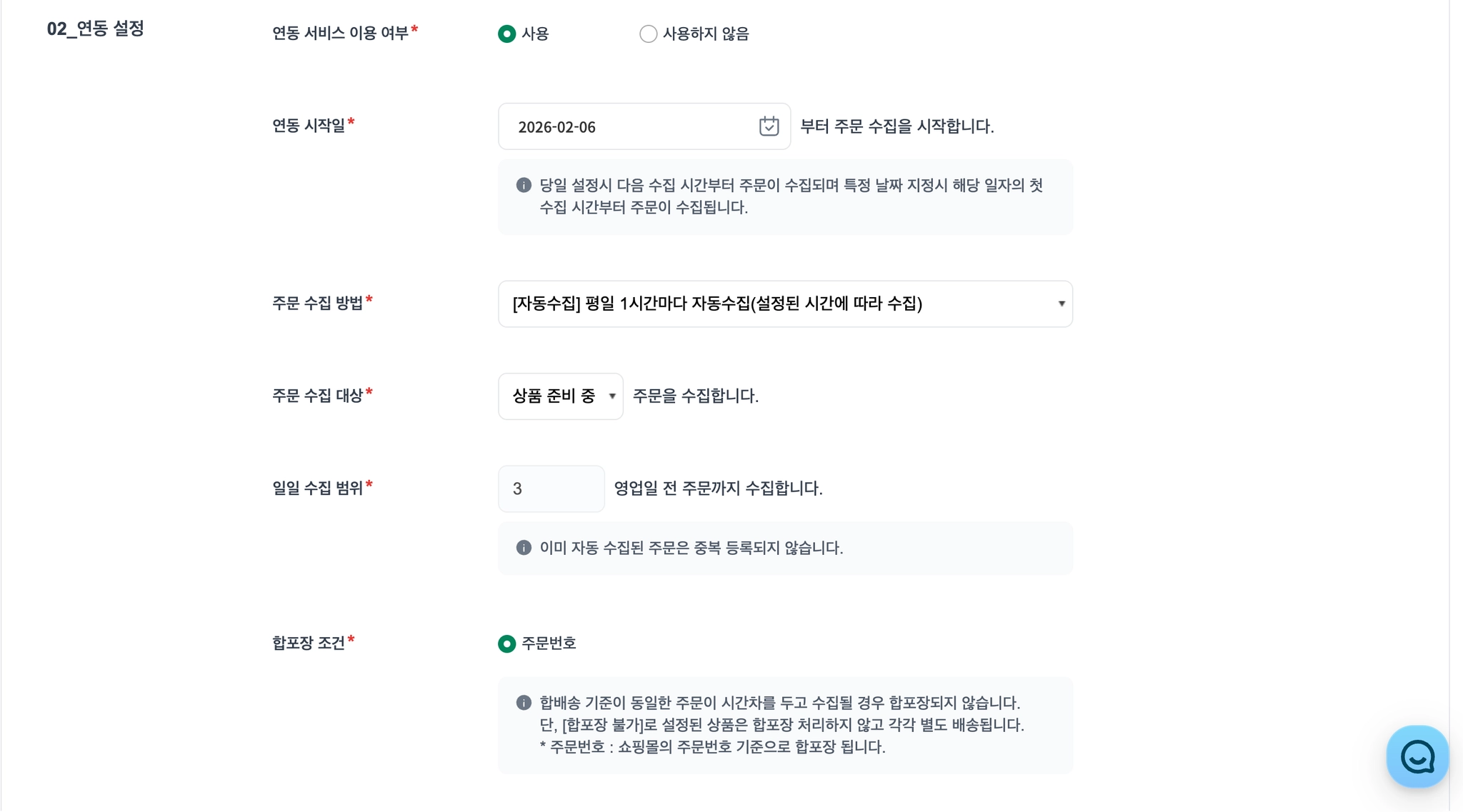 연동 시작일 | 주문수집을 시작할 일자를 설정합니다. |