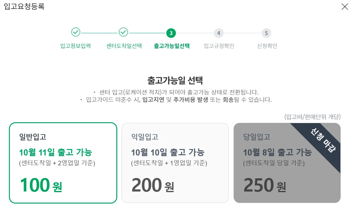 ❗️단, 출고가능일을 변경할 경우에는 선택하신 출고가능일에 따라 입고비가 변경됩니다.