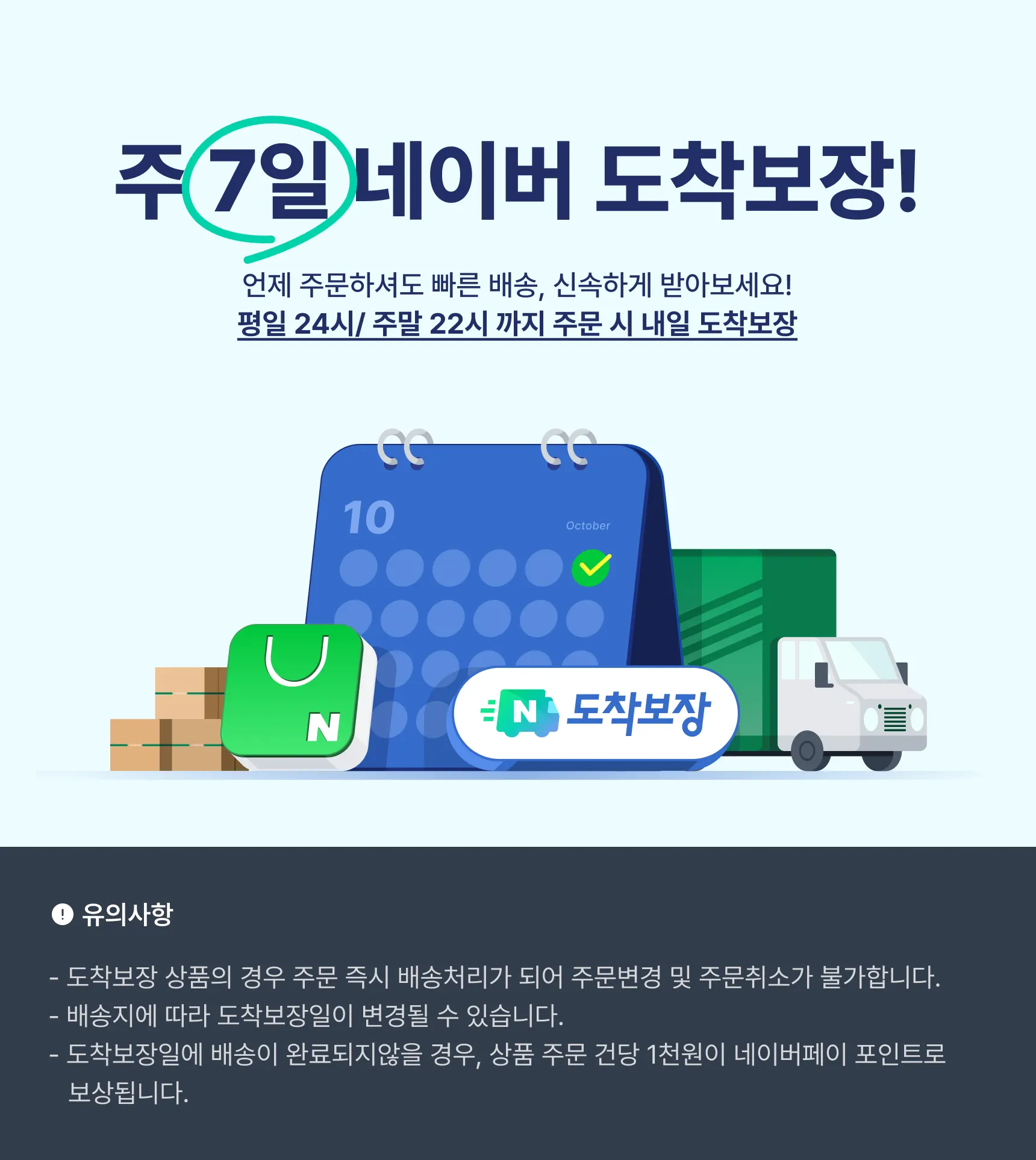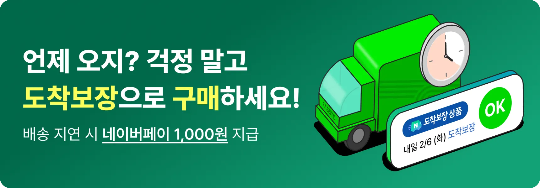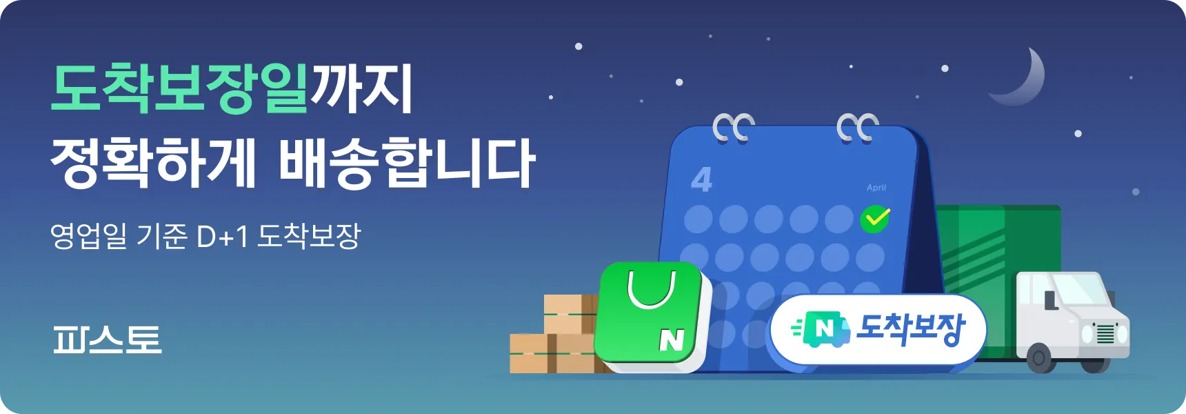 “도착보장일”까지 정확하게 도착보장하는 파스토 네이버 도착보장 프로그램을 이용 중이시라면 스마트스토어 상세 페이지에 아래 배너를 추가해, 믿음직한 배송력으로 고객님 스토어의 판매를 더욱 활성화해보세요!