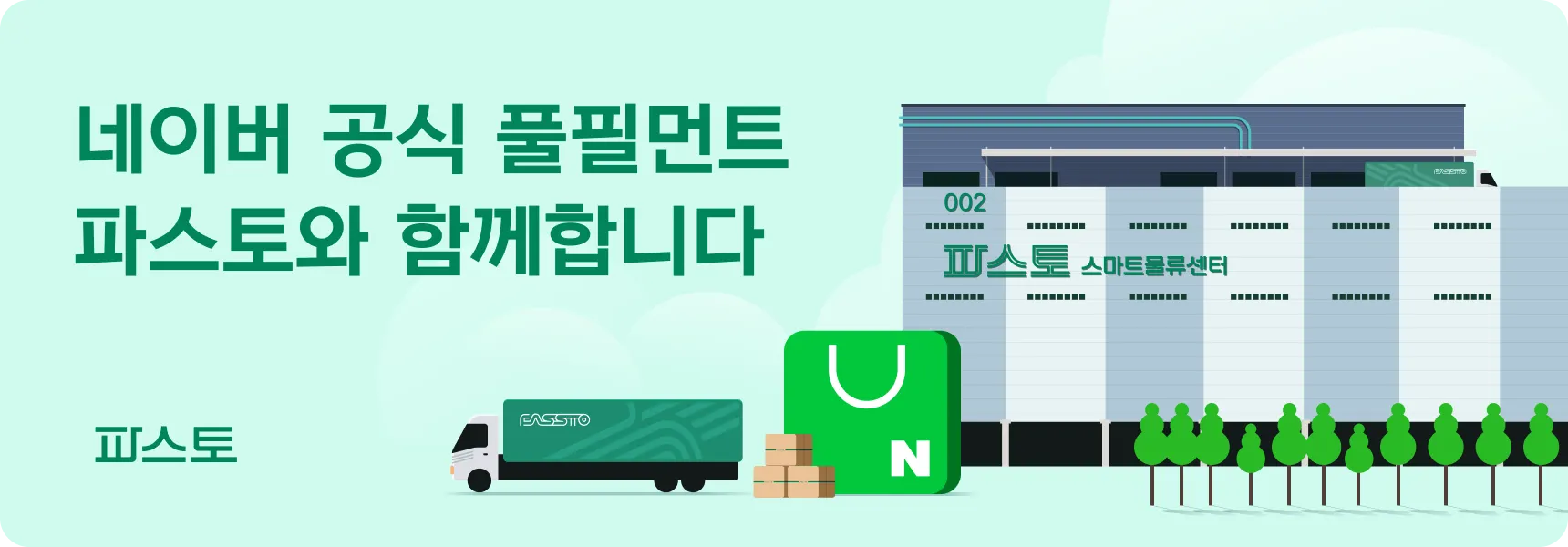현재 파스토를 이용 중이시라면 파스토 인증 배너를 쇼핑몰 상세페이지 등에 활용해 배송 신뢰도를 높여 판매를 활성화해보세요!