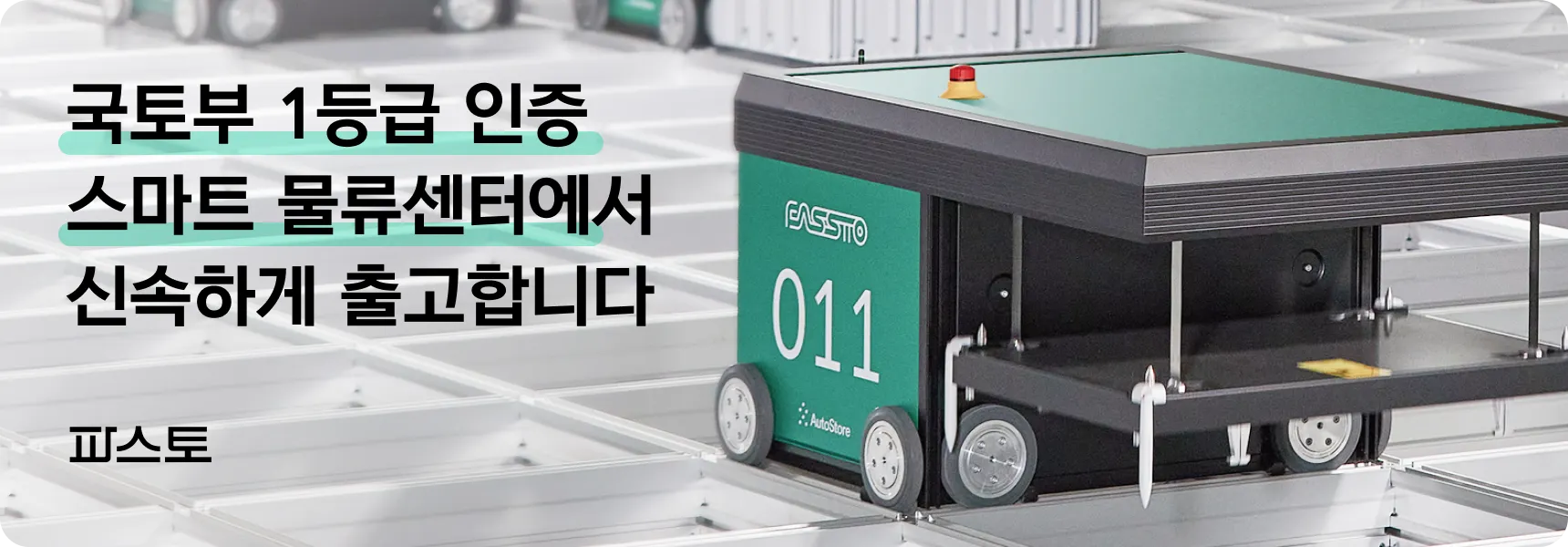 파스토 24 스마트 물류센터 용인 1, 2센터에서는 밤 12시까지 주문을 수집해 신속하게 당일에 출고해요. 해당 서비스를 이용 중이시라면 국토부 인증 1등급 스마트 물류센터 이미지를 활용해서 고객님의 쇼핑몰 배송력 신뢰도를 높여보세요.