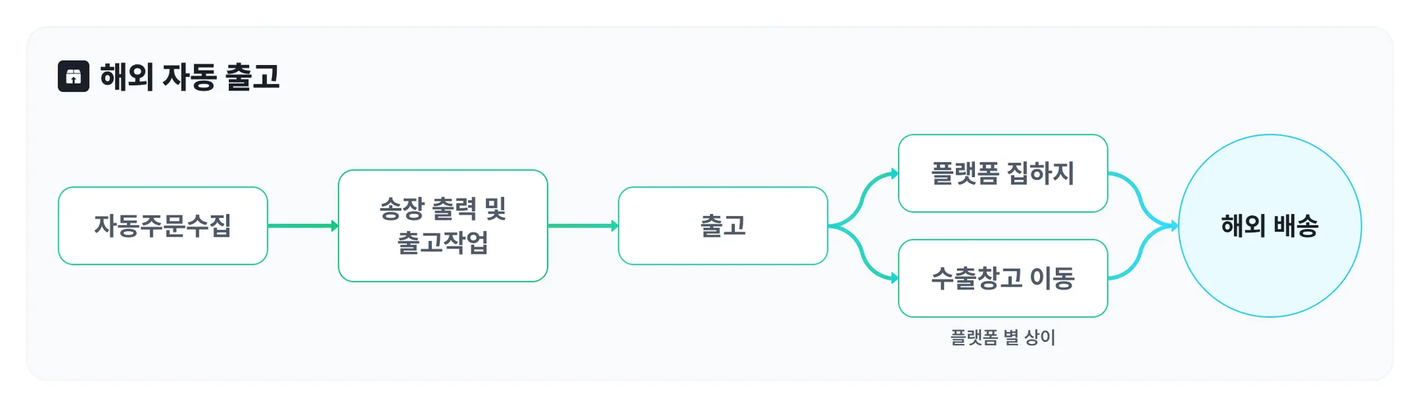 저장된 상품에 대해 주문이 수집되면, 해당 상품정보가 출고정보로 자동 연동됩니다.
