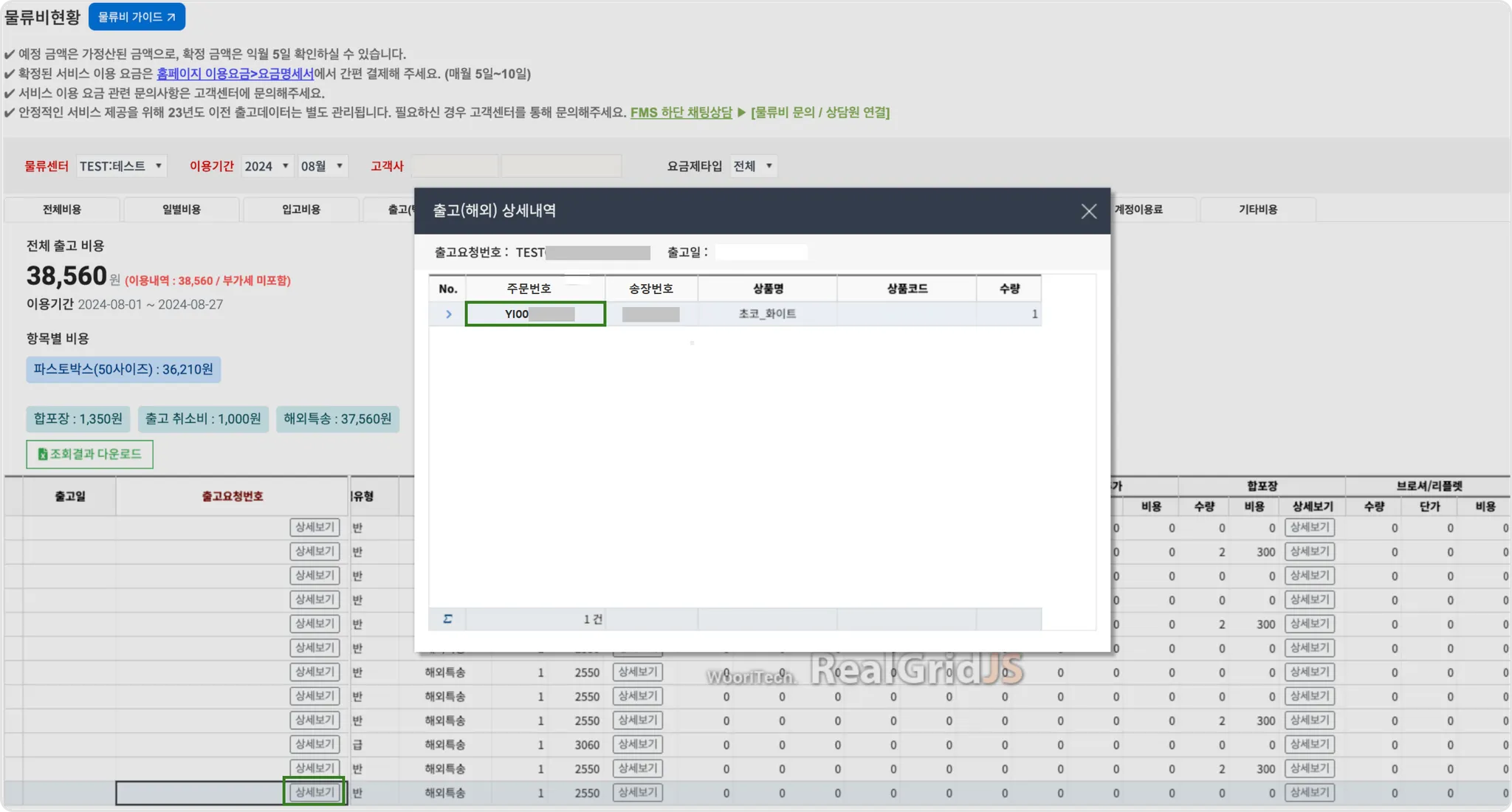 * 경로 : FMS 물류비현황 → 출고요청번호 상세보기