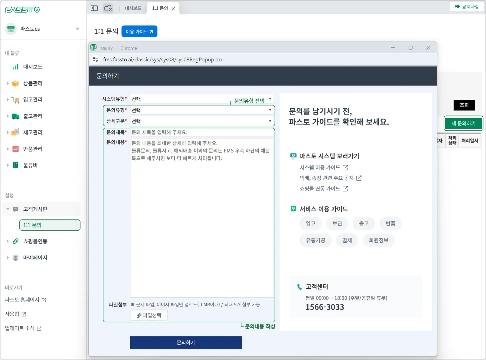 *경로 : FMS 1:1 문의 → 새 문의하기