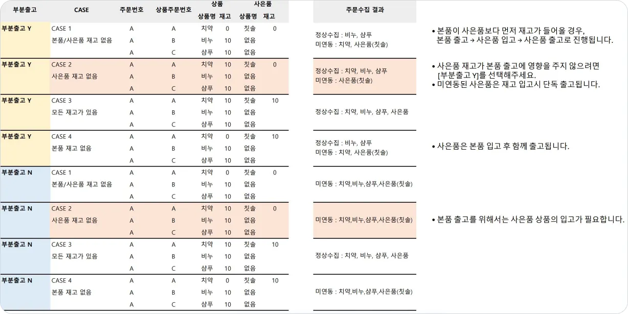 또한 사은품의 재고가 있더라도 가장 마지막에 생성된 주문에 포함되어 출고됩니다.
