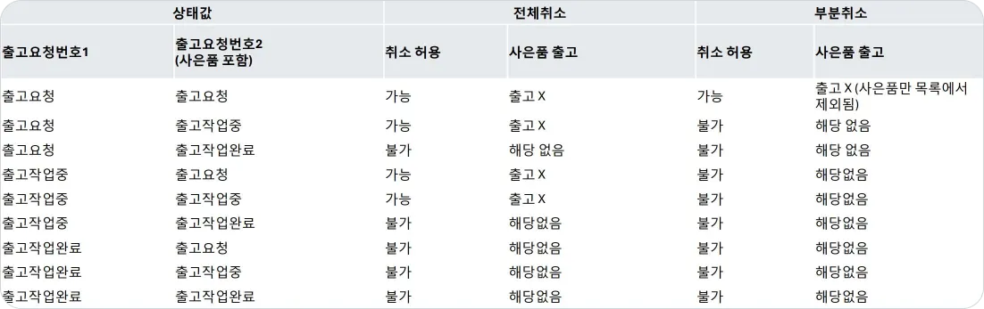 CASE1 : 배송 속성 또는 부분출고 Y로 인한 분리배송 중 출고요청번호 1번 취소 시